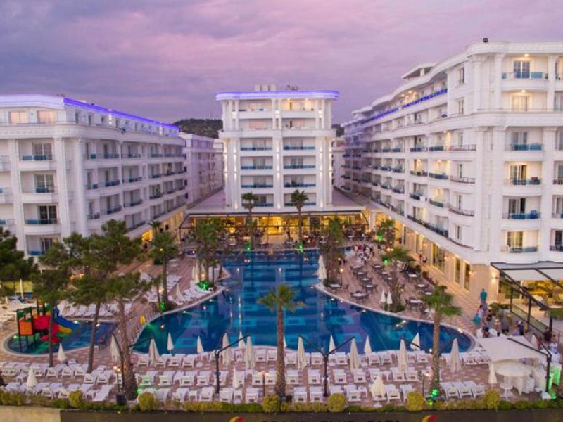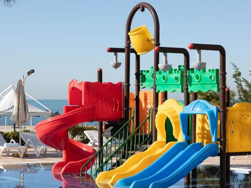Hotelski sadržaj: recepcija, lobi, restorani, spa, park za decu, dečiji klub, dečiji bazen sa toboganima, bazen, uživo program uveče i animacija.