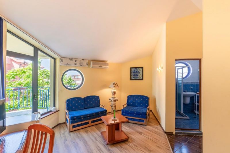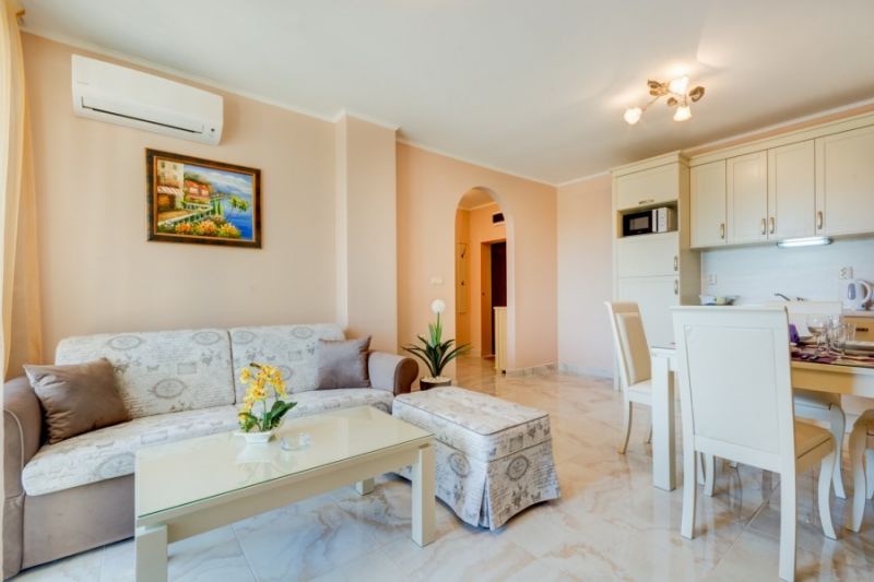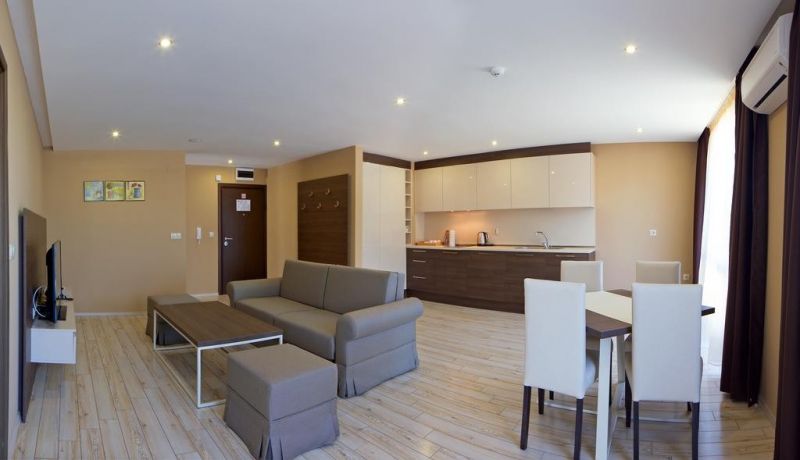 Jednosobni apartman za 2-3 osobe (2+1) – površine 60 m², spavaća soba sa francuskim ili dva odvojena kreveta, dnevni boravak sa sofom na razvlačenje, namenjen smeštaju max 3 odrasle osobe ili 2 odrasle osobe i jednog deteta.