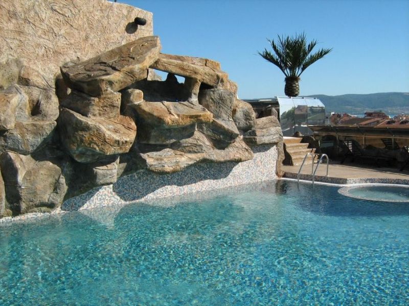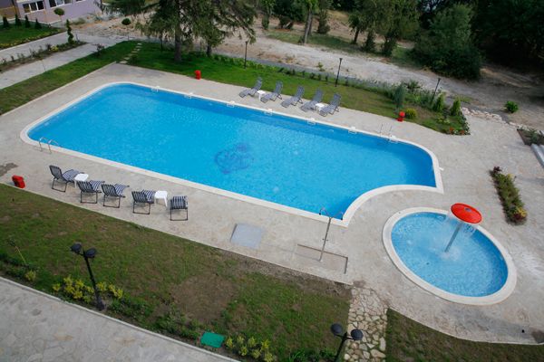 Sadržaj: Recepcija, bar, otvoreni bazen sa odeljkom za decu, dečje igralište, parking, fitness sala, sauna, tursko kupatilo.
