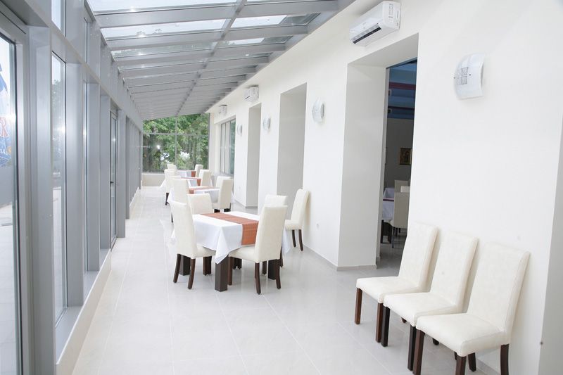 Hotelski sadržaj: velika terasa, bar, recepcija, restoran, bašta, otvorena kada sa toplom vodom u dvoristu hotela