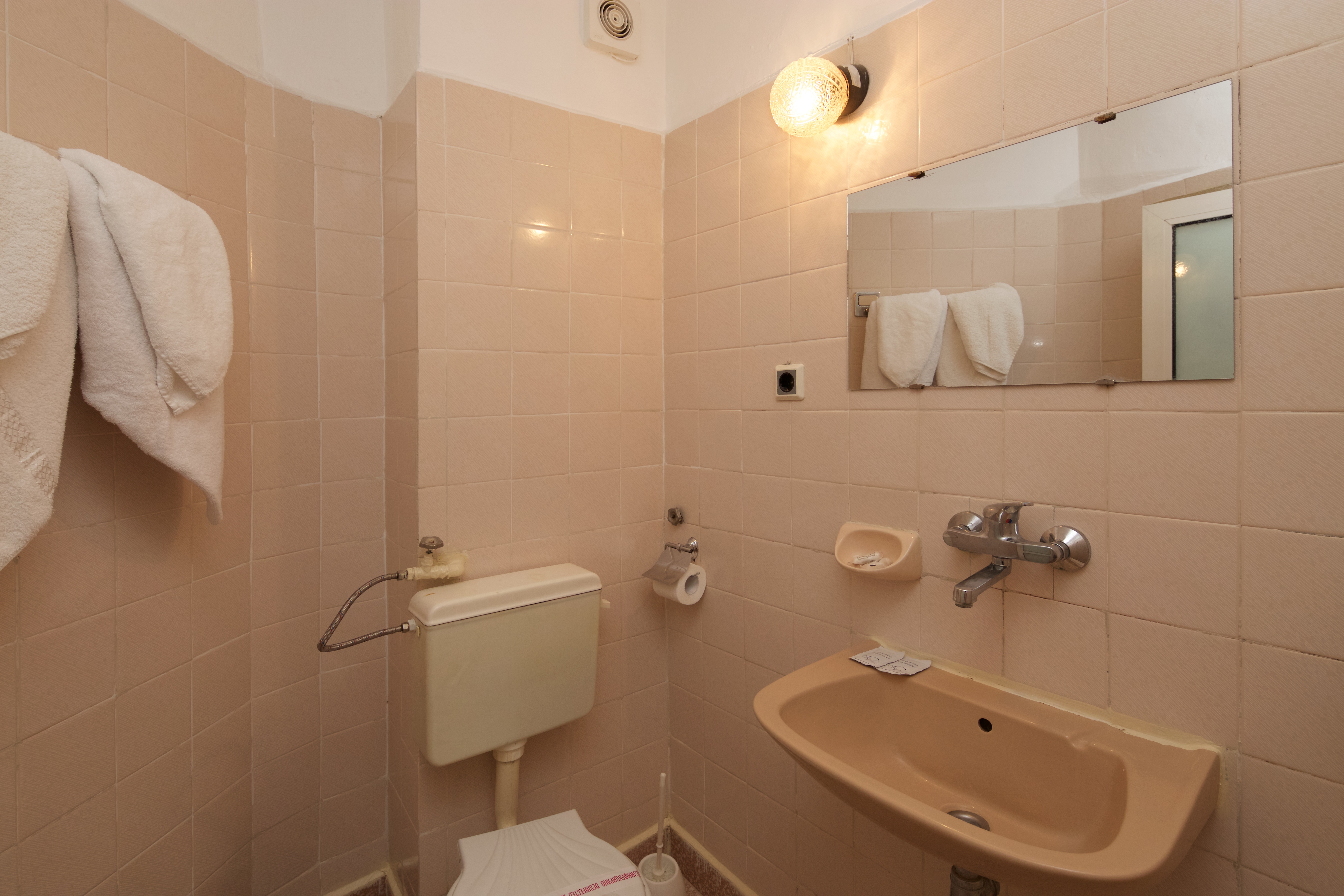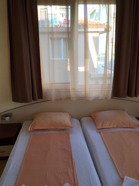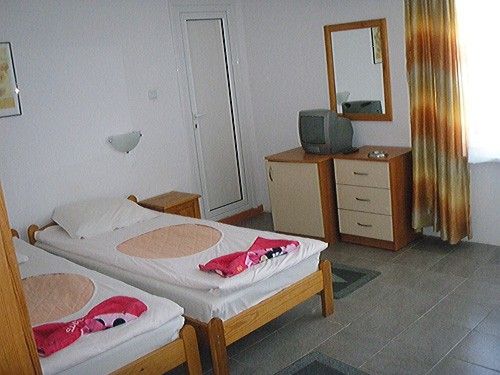 Nalazi se na 3-5 minuta od mora u centru grada, u blizini pošte. Raspolaže dvokrevetnim, trokrevetnim, četvorokrevetnim i petokrevetnim sobama. Svaka soba je opremljena frižiderom, televizorom, terasom, kupatilom sa TWC-om kao i klima uredjajem koji se doplaćuje na licu mesta u iznosu od 4 eur-a.