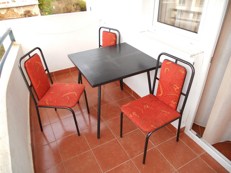 Studio 03 +1 / morska strana / Depadans: balkon, dva kreveta + jedan krevet, stolica na rasklapanje, klima, TV, kuhinja sa frižiderom, kupatilo sa tuš kabinom.