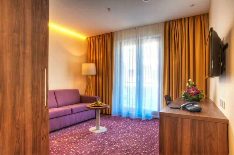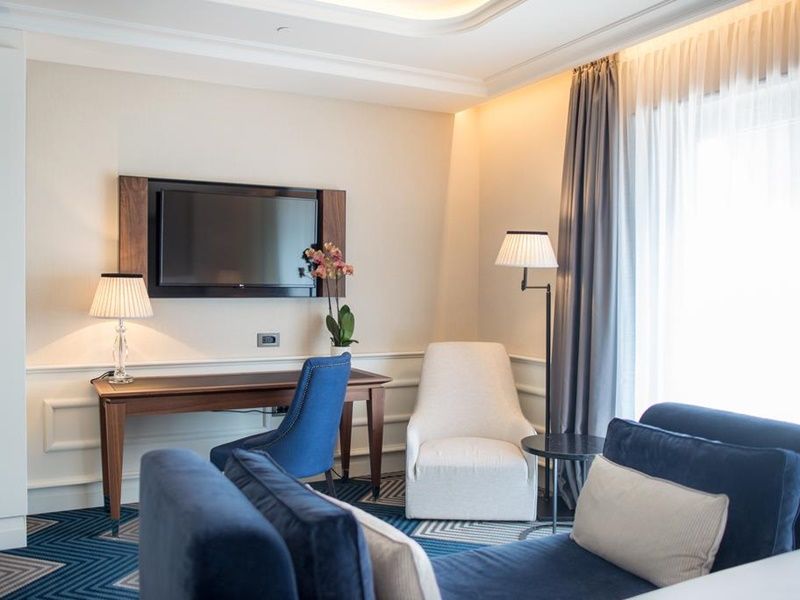 Moderne i luksuzne sobe nude sadržaje kao što su klima, mini bar, SAT TV, besplatan Wi-Fi, telefon, sef, kupatilo sa tušem, fen za kosu, toaletni pribor, bade mantil i papuče.