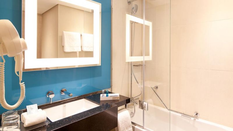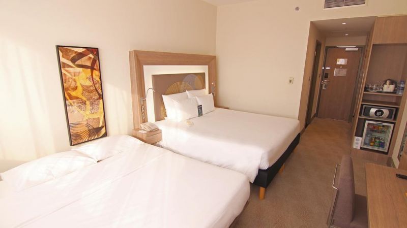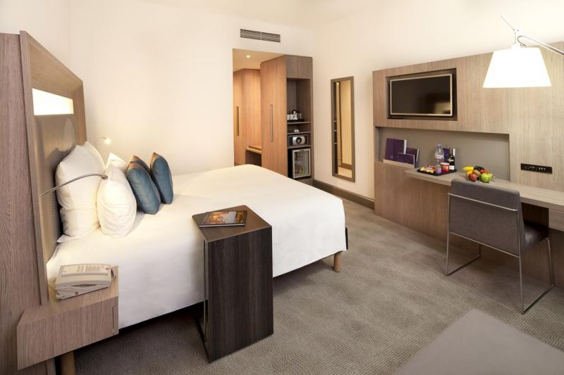 Objekat Novotel World Trade Centre Dubai je luksuzni hotel, smešten na Šejk Zajed roudu, na manje od 5 minuta hoda od stanice metroa Svetski trgovinski centar (na crvenoj liniji). Do Burdž Kalife (najviše zgrade na svetu), atrakcije Dubai frejm, Tržnog centra Dubai Mall (sa prodavnicama i skijalištem Ski Dubai), Tržnog centra Dubai Outlet Mall i Finansijskog centra u Dubaiju ima samo 5 minuta. Plaža Džumeira i Zlatni suk udaljeni su par minuta. Gostima je na raspolaganju besplatna usluga organizovanog prevoza do mnogih znamenitosti.Hotel je povezan sa Svetskim trgovinskim centrom u Dubaiju (Dubai World Trade Centre). Gostima su na raspolaganju bazen na otvorenom sa kontrolisanom temperaturom, ležaljke, besplatan WiFi u svim prostorijama, spa centar i potpuno opremljena teretana. Gosti mogu da se opuste u sauni i parnoj sobi.Prostrane, moderne sobe imaju flat-screen TV sa satelitskim kanalima, pribor za pripremu kafe/čaja koji se svakodnevno dopunjuje i sopstveno kupatilo sa luksuznim toaletnim priborom. Hotel pruža svakodnevno čišćenje. Deca mlađa od 16 godina mogu da borave besplatno u hotelu ako dele sobu sa roditeljima. Hotel takođe uključuje poseban deo za igru dece sa play station konzolom, knjigama i igračkama.Restoran Entre Nous služi internacionalnu kuhinju. Restoran takođe nudi svakodnevne obroke na bazi švedskog stola sa kineskom, italijanskom, azijskom i japanskom hranom. Posluga u sobi je dostupna non-stop i može gostima da ponudi obiman meni. Lagane obroke i zdrava jela možete da naručite u kafeu Cream i u baru Chill pored bazena. Svake večeri, u nagrađivanom baru Blue, nastupaju bendovi sa muzikom uživo.Hotel nudi poslovni centar, sobe za sastanke, recepciju koja radi non-stop i uslugu konsijerža, koja može da organizuje iznajmljivanje automobila i izlete. Gostima je na raspolaganju besplatan privatni parking.