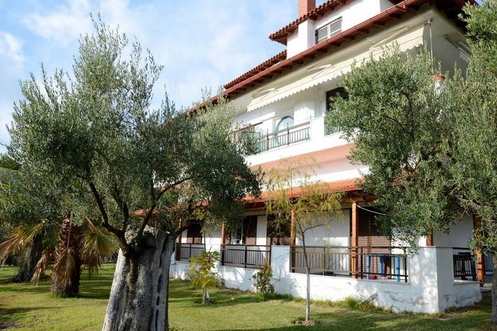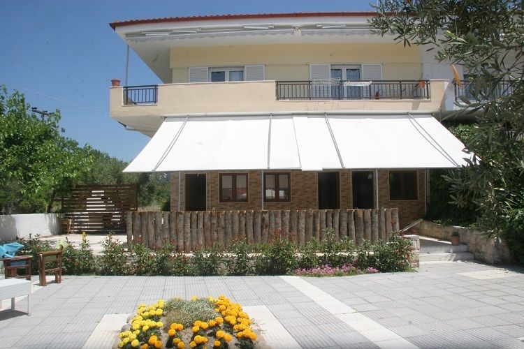 Vila Aristides (40.003518N, 23.384763E) se nalazi na 220m od plaže i 450m od centra mesta. Vila nudi smeštaj u trokrevetnim studijima i četvorokrevetnim apartmanima koji sadrže čajnu kuhinju (rešo sa dve grejne ploče) sa frižiderom, kupatilo sa tuš kadom, klima uređaj, LCD TV. U lepo uređenom mediteranskom vrtu se nalazi i veliki bazen sa ležaljkama. Korišćenje bazena i ležaljki je besplatno za goste vile. Pored bazena se nalazi veliki ozidani roštilj koji je na raspolaganju svim gostima kao i natkriveni prostor za sedenje. Najbliži market i mesara se nalaze na svega 100m. Vila Aristides poseduje i besplatni privatni parking a parkiranje je moguće i na ulici uz sam objekat. Vila je kao stvorena za parove i porodice koji žele smeštaj u mirnom delu mesta i na maloj udaljenosti od plaže.