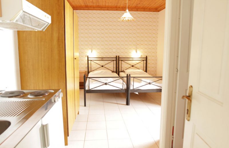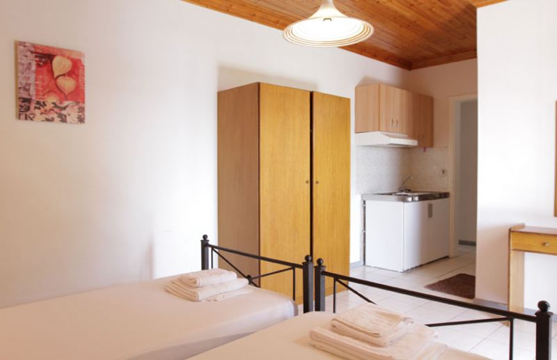 DVOKREVETNI STUDIJI: Dvokrevetni studiji su prostrani i u svom sastavu imaju ili dva standard singl ležaja ili jedan Francuski ležaj. Poseduju dobro opremljene kuhinje i nova kupatila. Kuhinje su u potpunosti opremljene posuđem za dve osobe. Najveća prednost su prelepe terase od kojih neke imaju pogled na more. Studiji poseduju noćni stočić i orman. Studiji nemaju TV.
