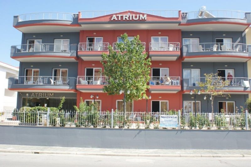 Vila Atrium je objekat izuzetnog enterijera, vila je veoma lepa, nova i komforna. Ovaj objekat raspolaže bazenom sa ležaljkama, recepcijom, velikim holom sa garniturama za sedenje, liftom, toaletom i tušem za poslednji dan boravka. Lokacija: Atrium se nalazi u mirnom, novom delu Leptokarije na oko 180 metara udaljenosti od plaže. Sadržaj vile: U ponudi su trokrevetne i četvorokrevetne studije, koji su smešteni na prvom spratu.