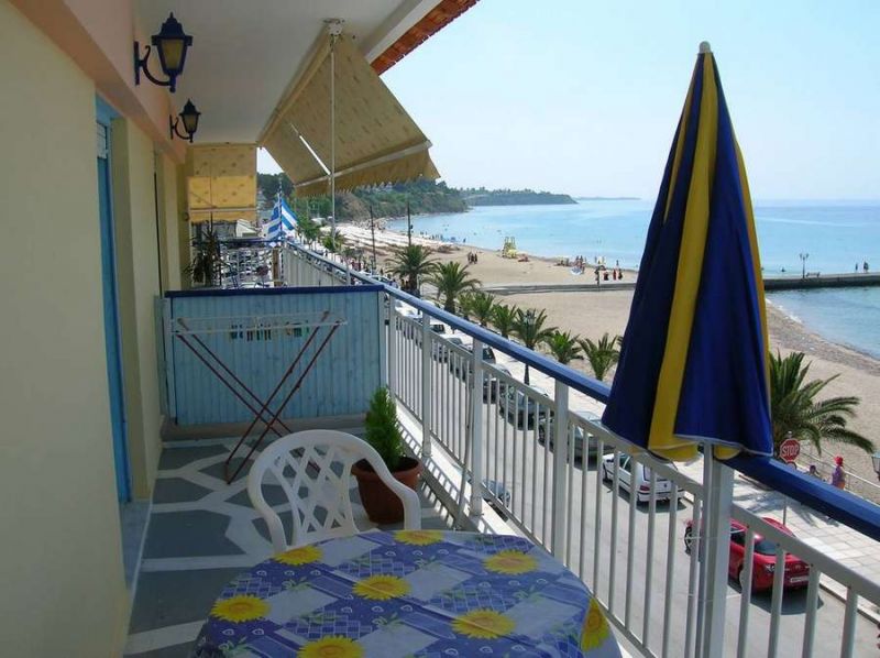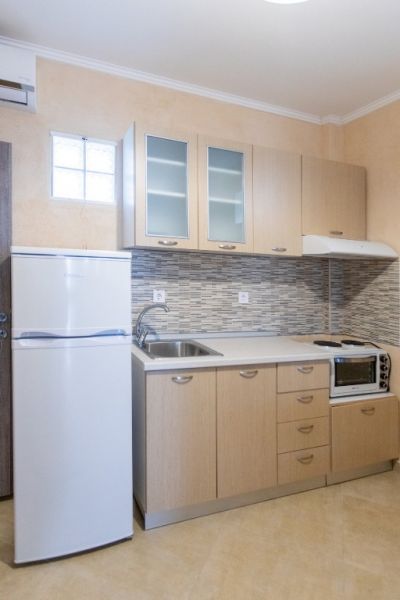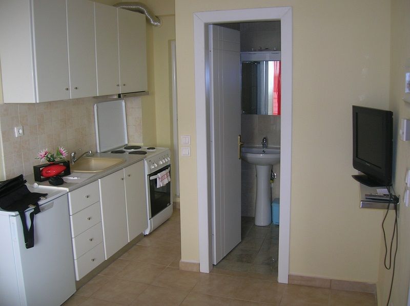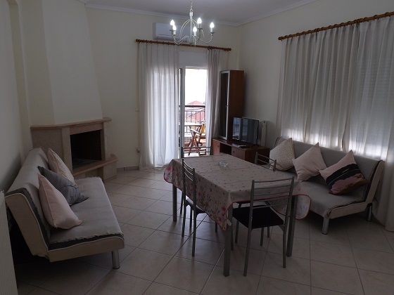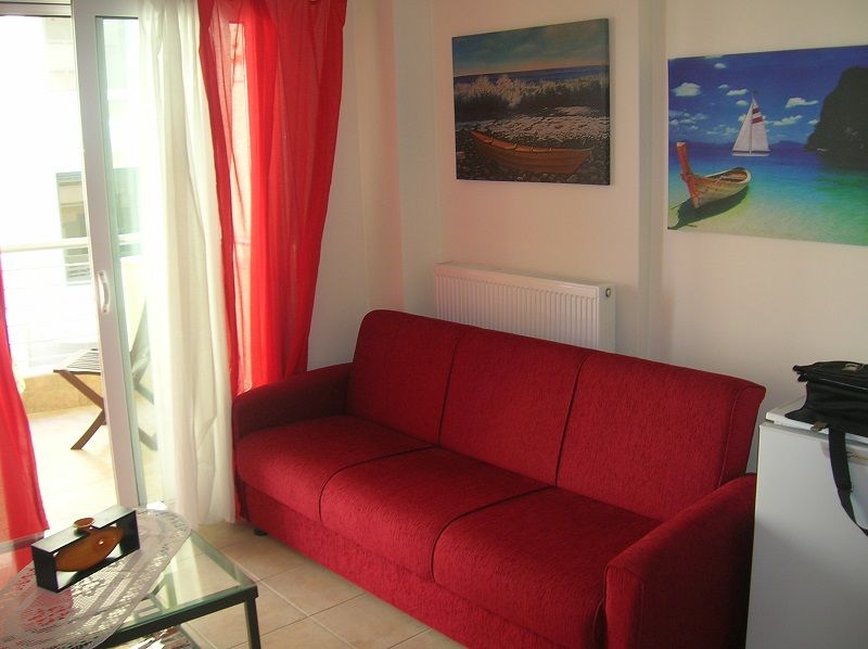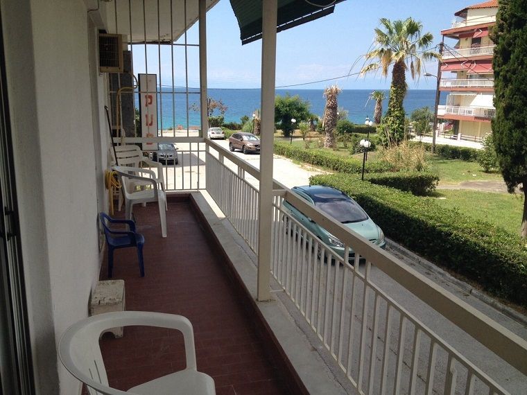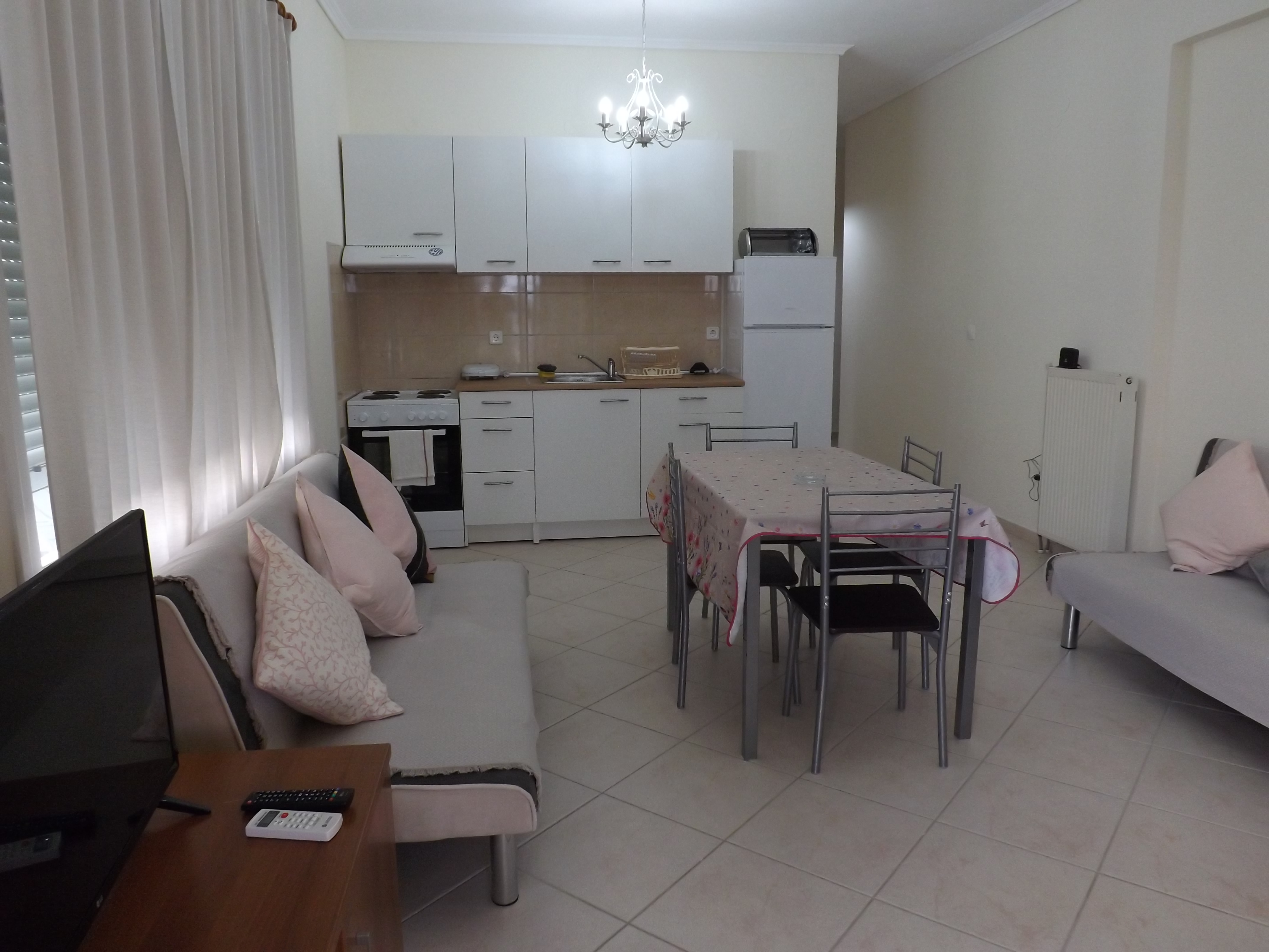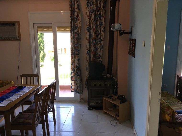 Lokacija: Apartmani se nalaze u mirnom delu Nea Kalikratije. Ispred zgrade se nalazi lep parkić. Od glavne plaže su udaljeni oko 300 metara. Apartman se nalazi na prvom spratu.