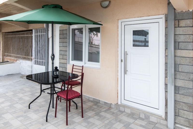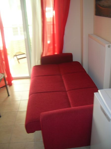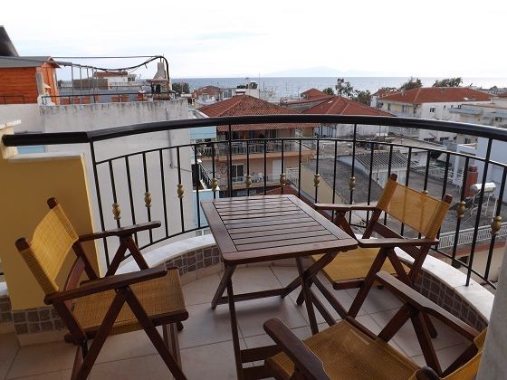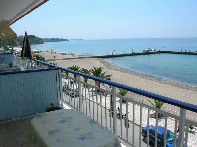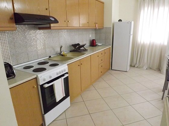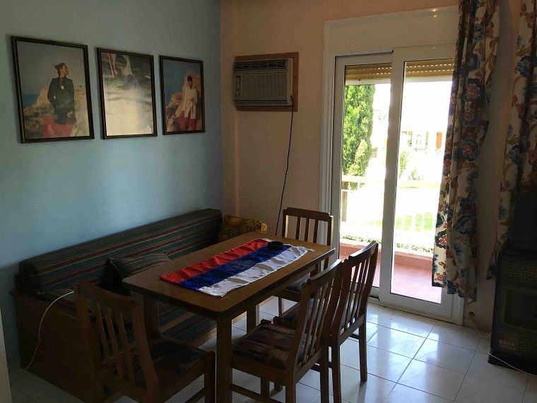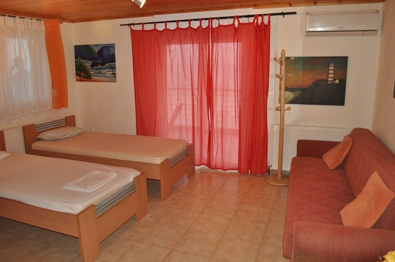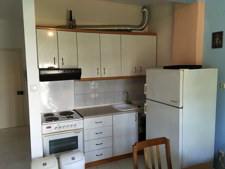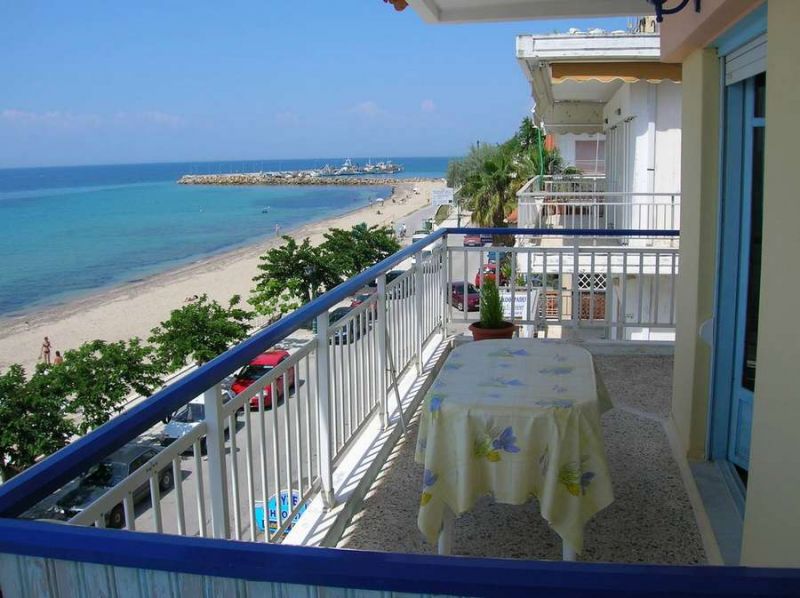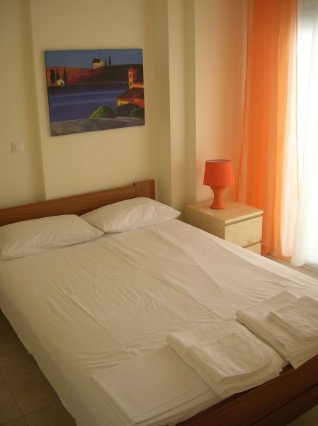 Lokacija: Apartmani se nalaze u mirnom delu Nea Kalikratije. Ispred zgrade se nalazi lep parkić. Od glavne plaže su udaljeni oko 300 metara. Apartman se nalazi na prvom spratu.