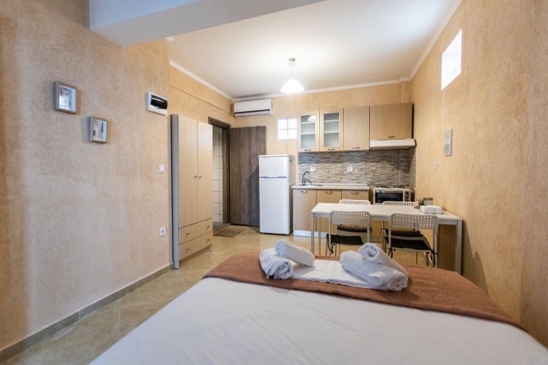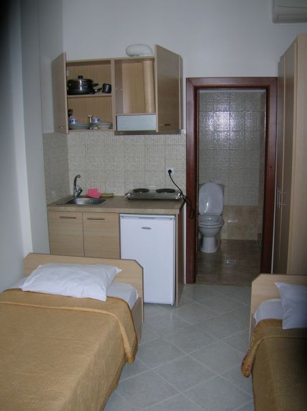 Kuhinjski deo sadrži rešo sa dve ringle, frižider, sudoperu i elemente sa osnovnim kuhinjskim inventarom. Kupatilo ima tuš kadu. Peškiri, toalet papir i sapun nisu sastavni deo smeštajne jedinice. Svi studiji imaju ulaznu terasu. Smeštajne jedinice su klimatizovane,imaju TV prijemnike sa grčkim kanalima. Parking nije obezbeđen, ali se može parkirati u neposrednoj blizini objekta.