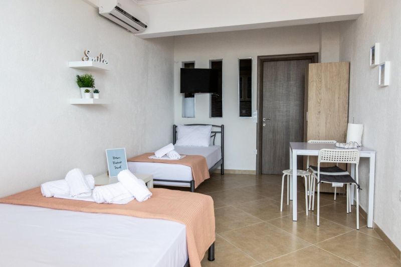 Peškiri, toalet papir i sapun nisu sastavni deo smeštajne jedinice. Svi studiji i apartmani imaju TV prijemnike sa grčkim kanalima, imaju internet wireless i terase sa bočnim pogledom na more. Sve smeštajne jedinice su klimatizovane. Smeštajni objekat nema obezbeđeno parking mesto.