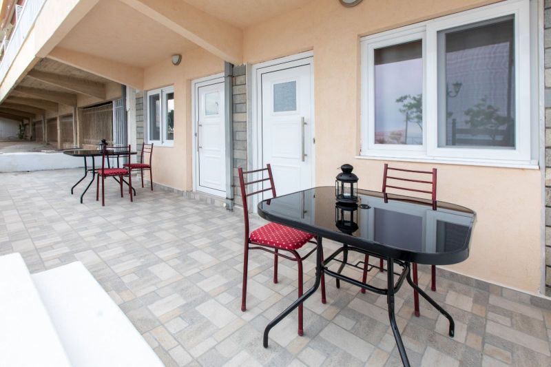 Apartmani Filina se nalaze u stambenoj zgradi u prvom redu do mora.Od plaže su udaljeni 50 metara i oko 300 metara od centra mesta. Kuća raspolaže sa jednim četvorokrevetnim duplexom na prvom spratu i dva apartmana u prizemlju (trokrevetnim i četvorokrevetnim). Smeštaj je potpuno nov, lepo uređen. Sve smeštajne jedinice imaju pogled more. U prizemlju ima dva apartmana. Oba apartmana su u odnosu na nivo ulice niži za 3 stepenika (pogledati fotografije).