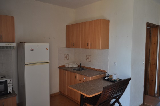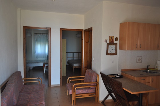 Struktura apartmana 2: apartman se sastoji od dnevnog boravka i kuhinjskog dela koji sadrži veliki šporet, veliki frižider, sudoperu i elemente sa osnovnim kuhinjskim inventarom i u kome se nalaze dva kauča na razvlačenje, i spavaćom sobom koja raspolaže sa francuskim ležajem. Kupatilo ima kadu. Peškiri, toalet papir i sapun nisu sastavni deo smeštajne jedinice. Smeštajne jedinice su klimatizovane, imaju TV prijemnike sa grčkim kanalima, internet wireless. Oba apartmana imaju terasu sa pogledom na more u daljini. Apartmani nemaju obezbeđeno parking mesto.