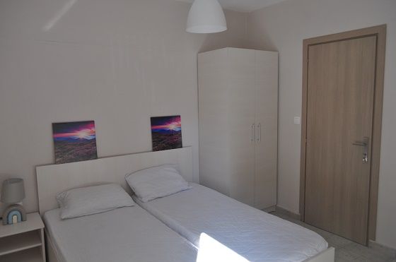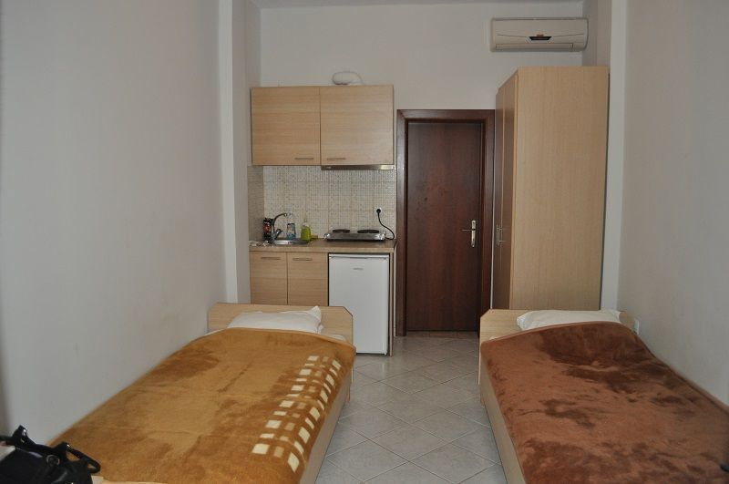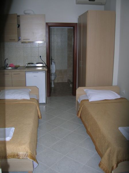 Struktura apartmana 2: se sastoji od sobe u kojoj ima jedan singl i jedan dupli krevet.Čajna kuhinja ima mali šporet sa dve ringle i rernom i opremljena je samo osnovnim priborom za pripremanje hrane.