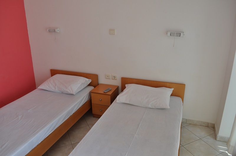 Smeštajni objekat raspolaže dvokrevetnim i trokrevetnim apartmanima i svi apartmani imaju direktan pogled na more. Postoji mogućnost ubacivanja pomoćnog ležaja (krevet na naduvavanje). Struktura apartmana: dva singl ležaja nalaze se u sobi, a jedan singl ležaj u kuhinji.