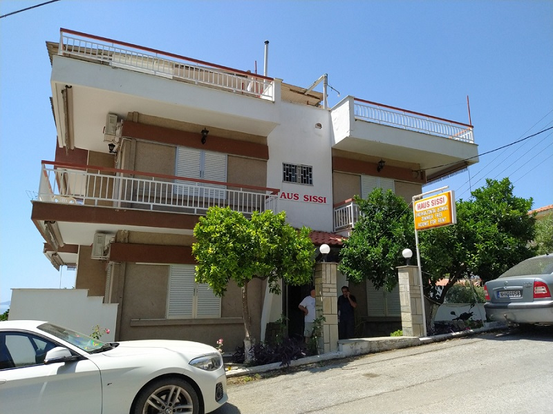 Kuća Sissy se nalazi na 150m od mora, iznad fudbalskog stadiona, a na 300m od gradske plaže u neposrednoj blizini dobro opremljenog supermarketa kao i taverni. U ponudi su studiji za 2 do 3 osobe kao i apartman za 5 osoba. Kuća ima televizor, besplatno korišćenje bežičnog interneta, kao i klima uređaj čije se korišćenje doplaćuje. Kuća ima manje dvorište. Određeni studiji imaju i pogled na more.