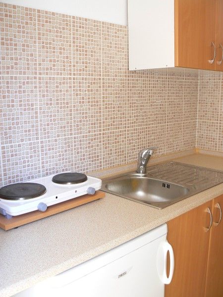 1/4 studio - u jednoj prostoriji čajna kuhinja, dva obična ležaja i jedan bračni ležaj.