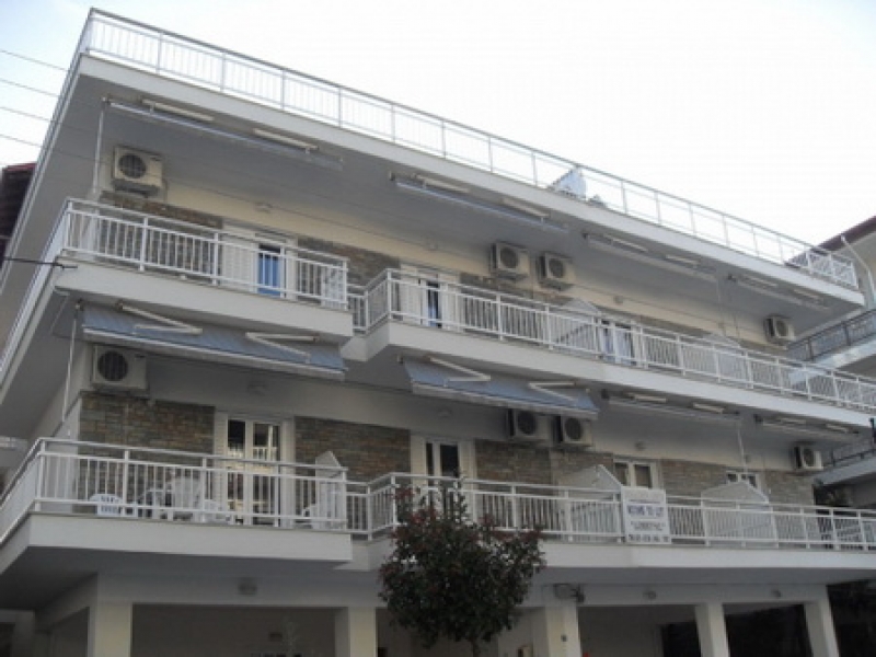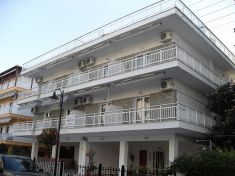 Vila Dimitris nalazi se na 150 m od plaže u centralnom delu Olympic Beach-a. Vila raspolaže dvokrevetnim i trokrevetnim studijima, četvorokrevetnim i petokrevetnim duplexima. Studiji su lepo opremljeni, poseduju čajnu kuhinju, kupatilo i terasu, TV i A/C. Klima uređaj se dodatno doplaćuje na licu mesta (6€ po danu).
