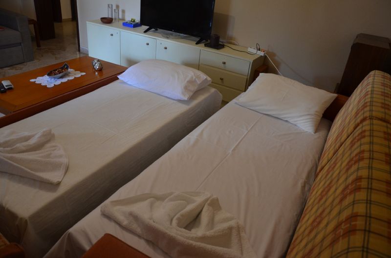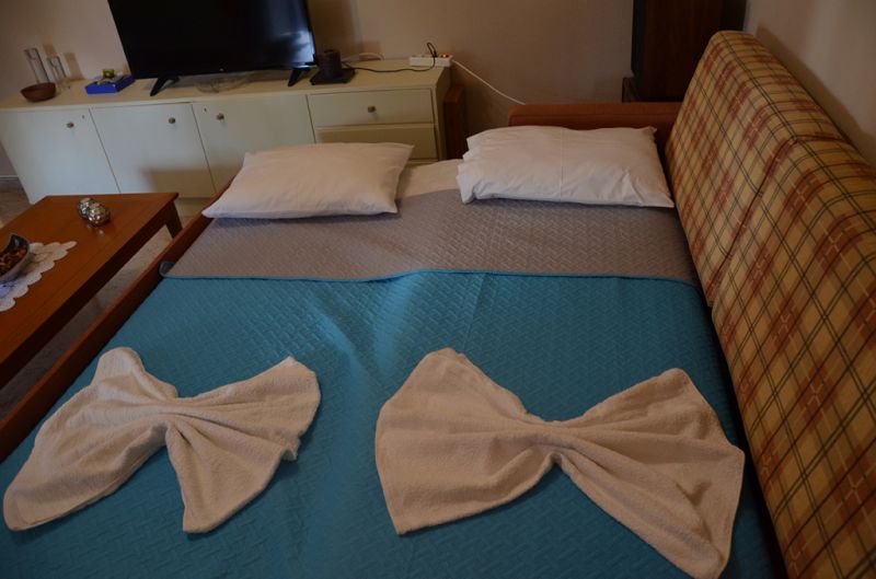 * Dimenzije ležaja u Grčkoj se razlikuju od naših standarda. Grčki standard za normalan ležaj je 75-80 cm sa 185-190 cm, francuz 120 x 190 cm i bračni ležaj 145-155 cm sa 180-190 cm. Pomoćni ležaj u svim objektima u Grčkoj je na sklapanje, drvene ili metalne konstrukcije ili fotelje na rasklapanje, manjih dimenzija.