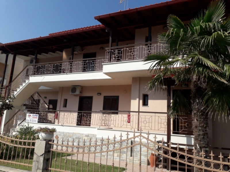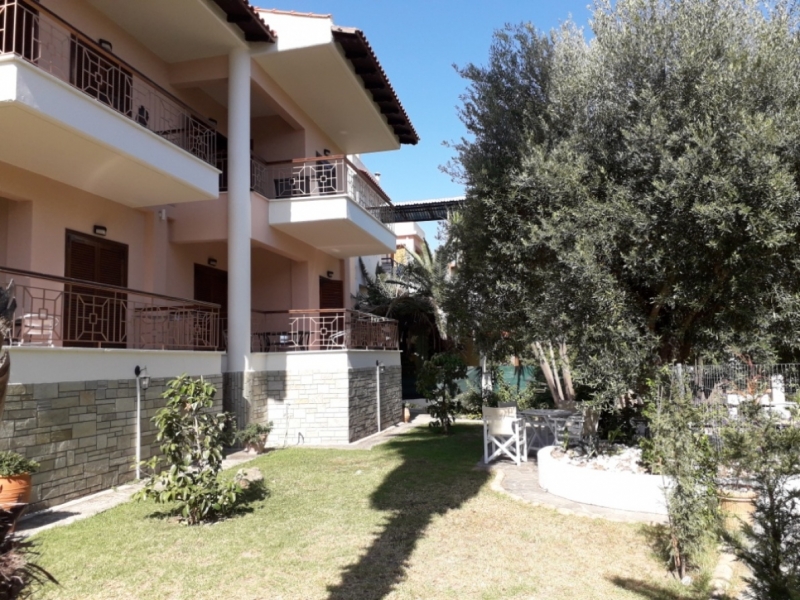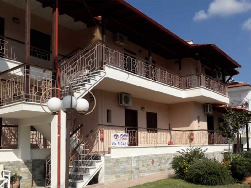 Lokacija: Vila se nalazi u najlepšem delu Pefkohorija, na 80m od plaže. Usluga: Najam apartmana. Smeštaj: Raspolaže 1/3+1 apartmanima, koji se sastoje od spavaće sobe sa 2 ležaja i dnevne sobe gde se nalazi kompletno opremljena kuhinja i krevet na razvlačenje za 2 osobe. Svi apartmani poseduju kompletno opremljenu kuhinju, TWC, terasu, TV i klima uređaj (korišćenje uključeno u cenu). Promena posteljine jednom u toku smene . Sadržaj: Vila je okružena zelenilom i poseduje veliko dvorište.
