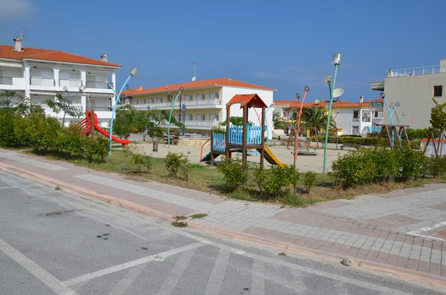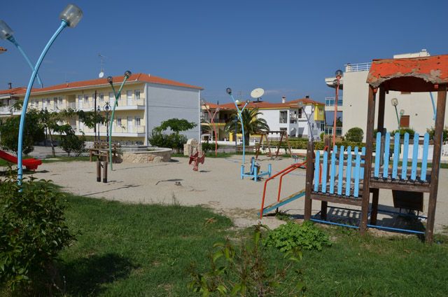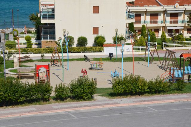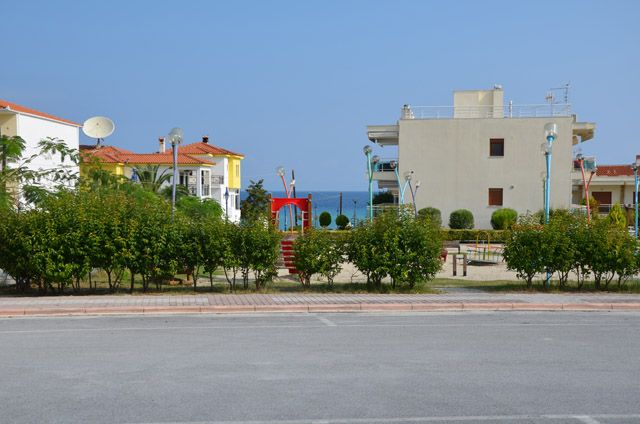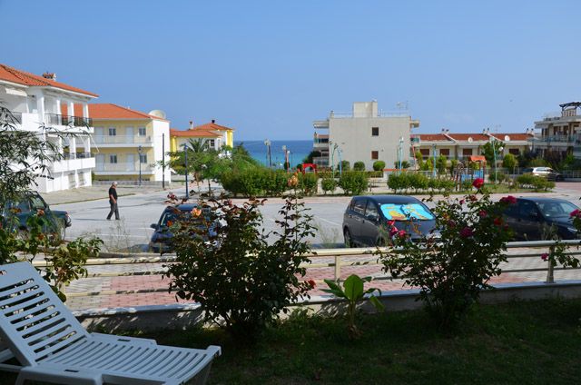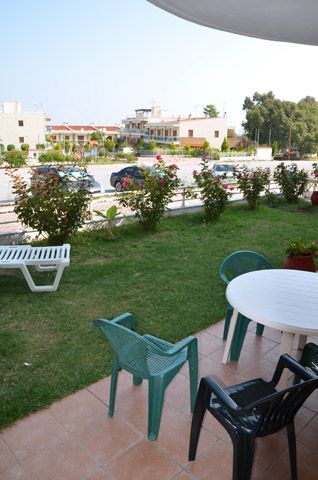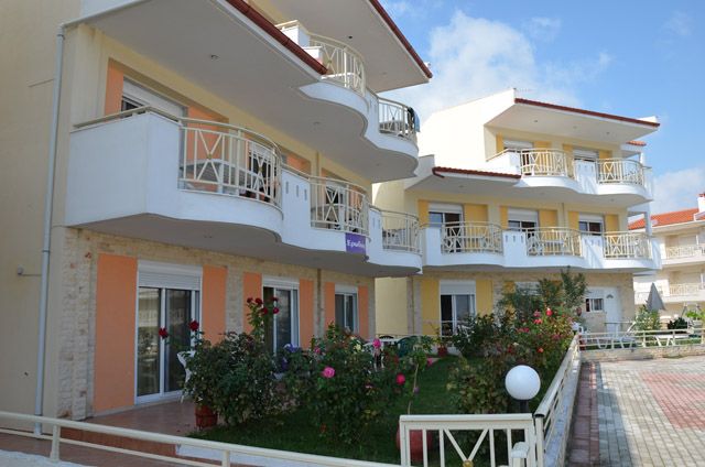 Ova prelepa vila novijeg datuma se nalazi na nepunih 100m od šetališta i prelepe plaže i na oko 200m od centra Polihrona. Ispred same vile se nalazi veliki parking. Većina apartmana ima pogled na more, a apartmani u prizemlju imaju pored terase i travnatu baštu koju mogu da koriste. Kuća za preporuku svima. Apartmani ne poseduju peškire.