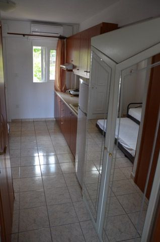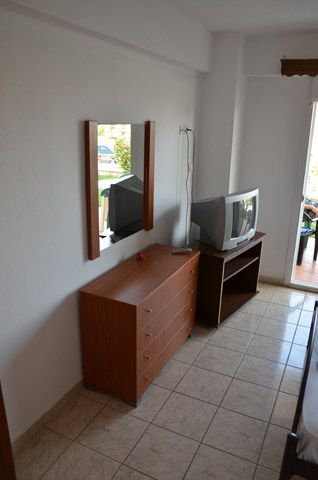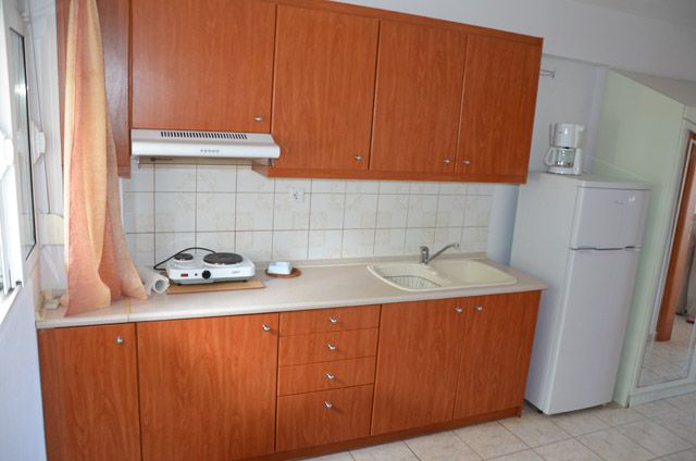 TROKREVETNI i 1/3+1 APARTMANI – Apartman se sastoje od spavaće sobe u kome se nalazi ili francuski ležaj dimenzija 190x145cm ili dva singl standardna spojena ležaja dimenzija 190x80cm, TV/KAT, noćni stočić i dve natkasne. Mali hodnik u kome se na jednoj strani nalazi ormar, dok se na drugoj nalaze kupatilo sa tuš/wc, i velika kuhinja sa posuđem za tri ili četiri osobe, rešo sa dve ringle (mala i velika) i aspirator i veliki frižider. Takođe, u tom dnevnom boravku se nalazi ležaj iz koga se izvlači još jedan ležaj (u 1/3+1 APP). Dimenzija osnovnog ležaja je 185x80cm, dok dimenzija ležaja koji se izvlači je 180x80cm. Apartmani su idealni za porodice sa dva deteta, a takođe je pogodan i za četiri odrasle osobe. Apartmani na prvom i drugom spratu poseduju prostrane balkone i pružaju divan pogled. Dok apartmani u prizemlju imaju pored balkonskog dela i travnati deo za bezbrižnu dečiju igru.