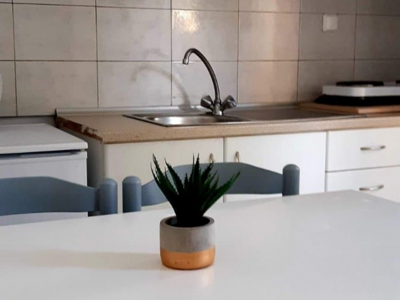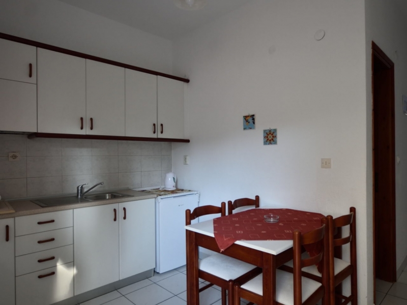 Lokacija: Vila se nalazi na 300m od plaže, iznad crkve. Usluga: Najam studia. Smeštaj: Vila raspolaže 1/2. 1/3 i 1/3+1 studiima koji se nalaze na prvom i drugom spratu. Svi studiji sadrže opremljenu kuhinju koja je odvojena vratima od spavaće sobe, kupatilo, TV, terasu, klima uređaj (uključen u cenu). Sadržaj: Vila poseduje internet. Posteljina se menja jednom u toku boravka. Ne poseduje peškire.