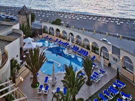 Položaj: Nalazi se u gradu Rodosu, na samom špicu ostrva. Ulicom je odvojen od 2 plaže i izlazi na Egejsko i Sredozemno more. Preko puta hotela se nalazi akvarijum, u neposrednoj blizini je kazino, a na par minuta hoda je luka Mandraki i stari grad.