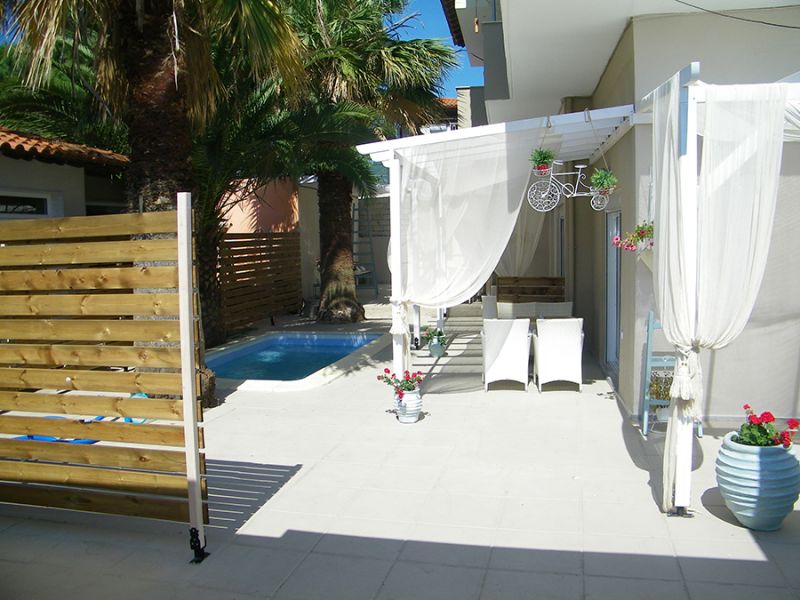 Nova kuća Avli nalazi se u starom delu Sartija na oko 120m od mora. U ponudi su četvorokrevetni studiji i apartmani, koji se nalaze u prizemlju. Svi imaju SAT TV, WIFI i klima uređaj čije je korišćenje uključeno u cenu. Kuća je odlična za porodice sa malom decom jer je uvučena od glavne ulice i u dvorištu je na raspolaganju manji dečiji bazen (10m2).