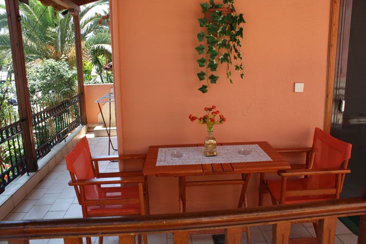 Nalazi se na oko 180m od plaže u mirnom delu Sartija. Dva trokrevetna apartmana su u parteru, uvučena od ulice, a dva dvokrevetna i trokrevetni studio su na 1. spratu. Svi apartmani imaju TV i klima uređaj čije se korišćenje doplaćuje, kao i signal za besplatno korišćenje bežičnog interneta. Klima je uključena u cenu samo u studiju br.5 koji je nešto manje kvadrature i sa izdvojenom terasom.