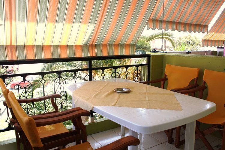 Nalazi se u starom delu Sartija, na oko 180 metara od mora, a na samo 40m od trga. Apartmani se nalaze u prizemlju, na prvom i drugom spratu i imaju prelepe terase sa pogledom ka uredjenom dvorištu ispred kuće. Svi imaju SAT TV, signal za bežični internet i klima uređaj čije se korišćenje doplaćuje. Na pola smene je organizovano čišćenje i zamena posteljine i peškira.