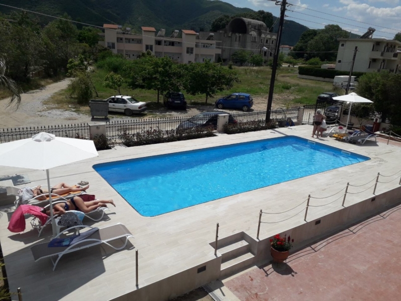 Lokacija: Moderna kuća sa bazenom locirana je na 50 m od plaže i oko 200 m od centra. Usluga: Najam studia. Smeštaj: Vila raspolaže 1/2 i 1/3 studiima. Svi poseduju kuhinju, twc, terasu, TV i klima uređaj (uz doplatu). Sadržaj: Vila poseduje bazen. U prizemlju se nalaze hol i recepcija. Promena posteljine je na 5 dana, peškira nema. Poseduje WiFI.