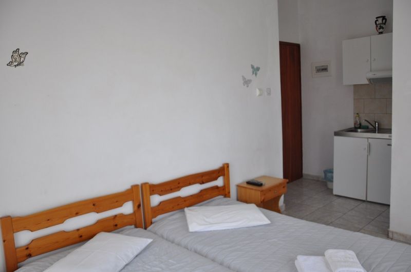 Smeštaj: Vila Vaso raspolagaže sa tri dvokrevetna studija. Sve smeštajne jedinice imaju kompletno opremljenu čajnu kuhinju, kupatilo, SAT TV, besplatni WiFi internet, klima uređaj (doplata 5 € dnevno), balkon sa tendama i komarnike. Posteljina se menja na svakih pet dana. Peškiri i ostali higijenski pribor nisu sastavni deo studija (poneti sopstvene).