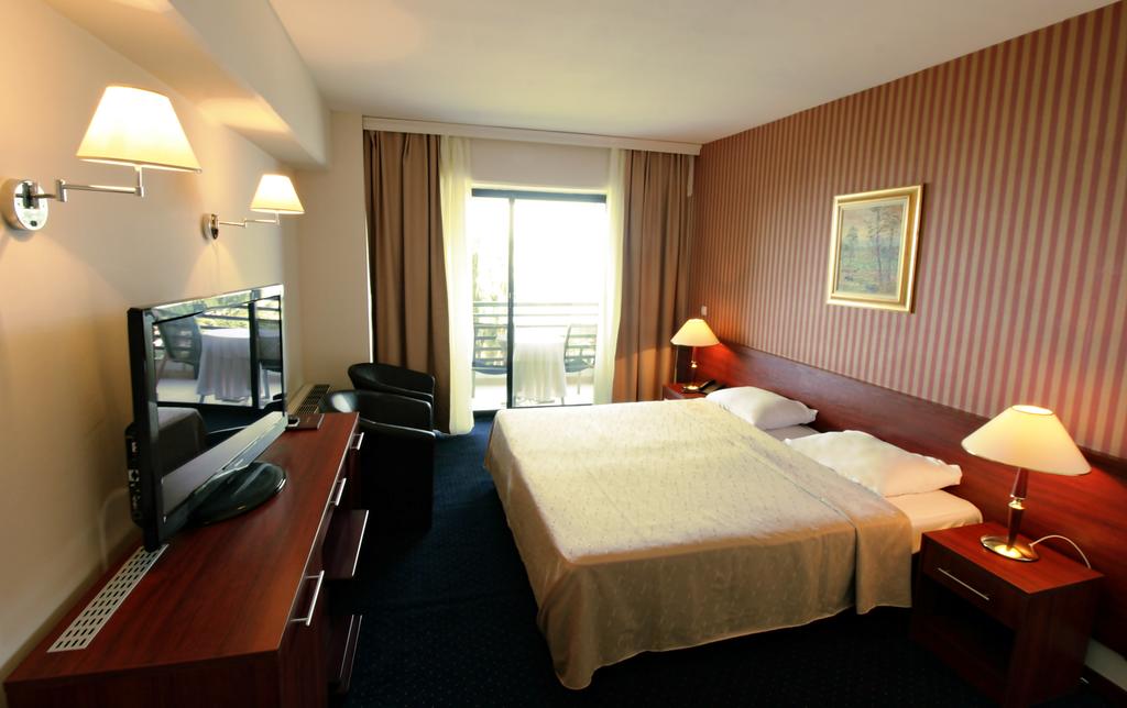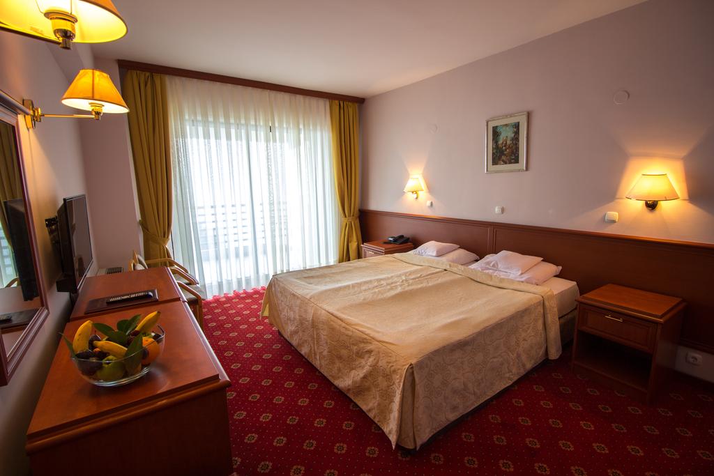 Hotel Klimetica 3* hotelklimetica.com.mk Hotel Klimetica se nalazi u okruženju borove šume u naselju Sveti Stefan na 4 km od centra Ohrida, na 200m od obale Ohridskog jezera. Od dodatnih sadržaja gostima su na raspolaganju: recepcija, restoran, caffe bar sa terasom, saunu, teren za fudbal. Sobe su opremljene TV-om, telefonom, mini-barom, kupatilom i terasom. Doručak je na bazi švedskog stola, večera kontinentalna.