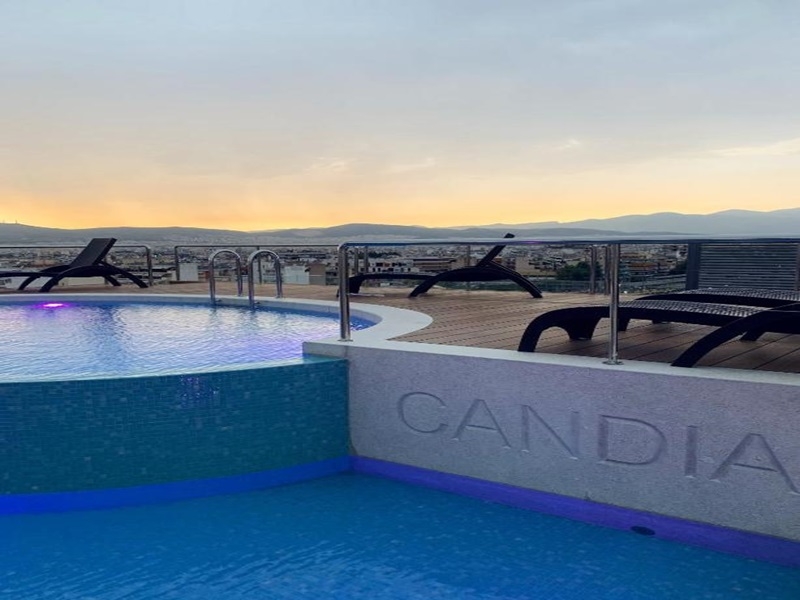Sve sobe hotela Candia imaju klima-uređaj, besplatan ViFi, mini frižider i TV sa ravnim ekranom. Veće sobe imaju balkone sa pogledom na grad. Neki nude pogled na Akropolj.