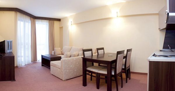 Sadržaj hotela: recepcija, lobi, lobi bar, glavni restoran, mehana, zatvoreni bazen, fitnes, đakuzi, sauna, parno kupatilo, solarijum, masaža, konferencijska sala, parking.