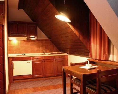 Sadržaj apartmana: svi apartmani su opremljeni mini blok kuhinjom sa frižiderom, svim potrebnim posuđem i kuhinjskim priborom, kupatilom (TVC), telefonom i TV-om.